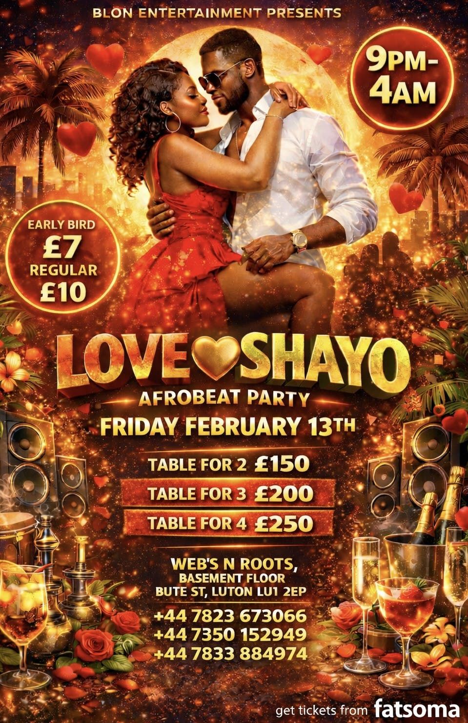Love Shayo š„Friday 13th Feb 2026 | [WEBāS N ROOTS, BASEMENT FLOOR BUTE ST, LUTON LU1 2EP]