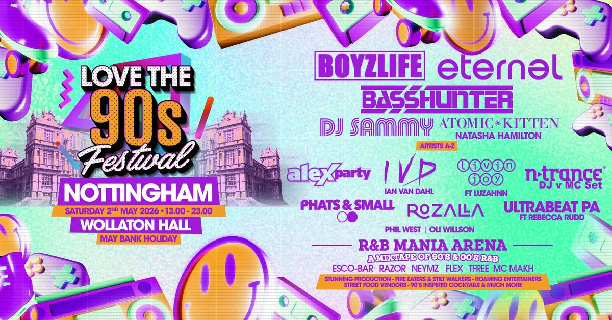On Saturday 2nd May 2026, Wollaton Park becomes the ultimate throwback playground as Love The 90s Festival brings a huge all-star lineup to the city! ππ₯Get ready for iconic performances from Boyzlife, Eternal, DJ Sammy, Alex Party, Ian Van Dahl, Livin' Joy, Rozalla, N-Trance, Phats & Small + even more still to come! π§π₯ + Special Guest Basshunter!