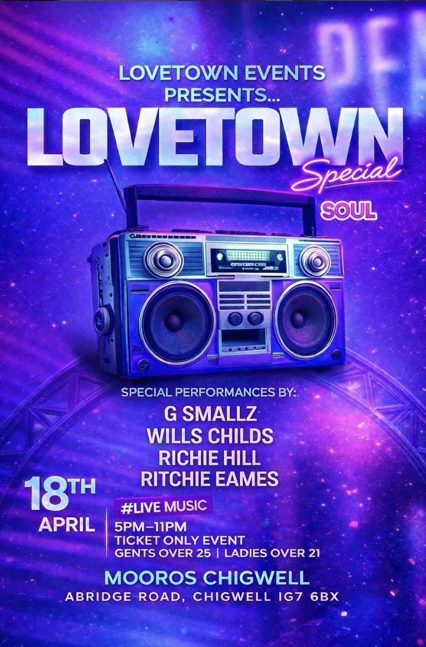#LovetownSpecial #LovetownEvents #SoulMusic #LiveDJ #TicketOnlyEvent #ChigwellEvents