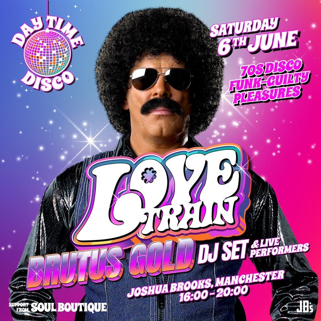 Brutus Gold brings the Love Train to Joshua Brooks for Day Time Disco. 70s disco, funk and guilty pleasures. DJ set with performers. Let's go.Artists