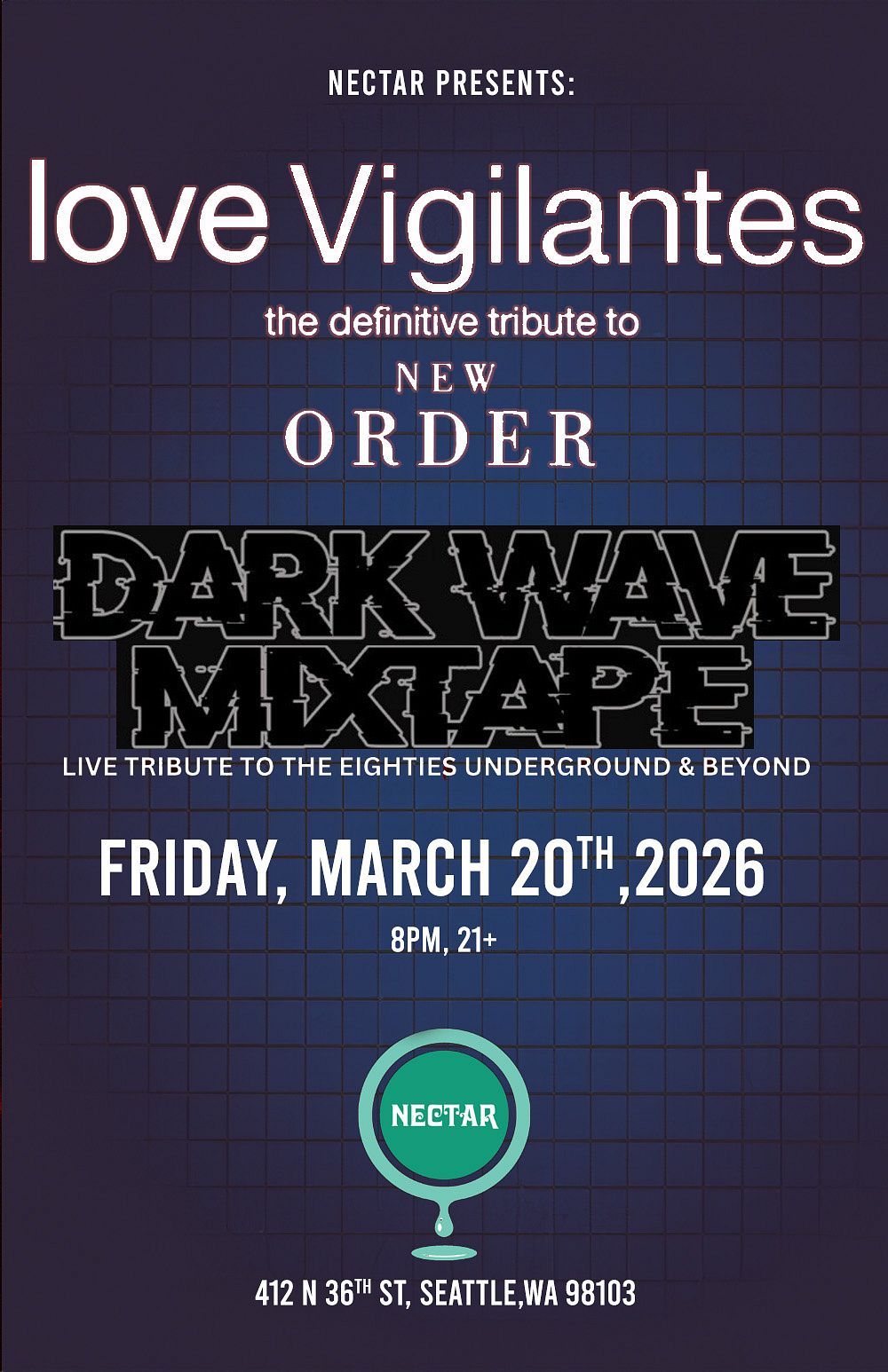 🌟 Step into a world of wonder at Love Vigilantes - Tribute to New Order, where extraordinary moments await! 🏛️ Located at Nectar Lounge in dynamic Seattle, WA, this event will become the talk of the town. 📅 Join us on March 19th, 2026 at 04:00 PM for a celebration that defies the ordinary. ✨ This curated experience brings together the best of entertainment, culture, and community spirit. Every detail has been thoughtfully planned to ensure an unforgettable experience for all our guests. 🎯 Take advantage of this opportunity to be part of something special. 🎊 Early registration is recommended as space is limited!http://maps.seatics.com/GeneralAdmissionEvent_2019-01-14_1230_SVGC_tn.gif