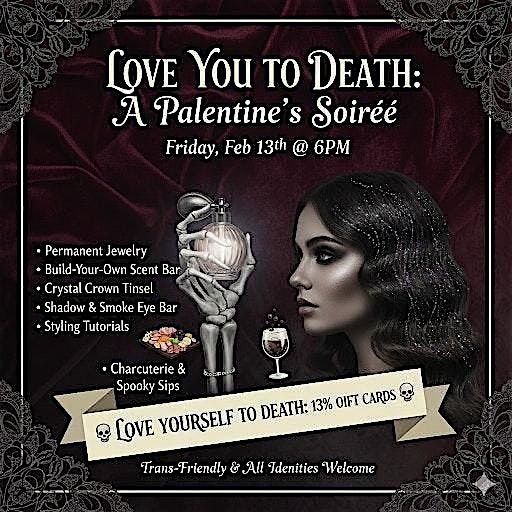 This Friday, February 13th, we are flipping the script on tradition. Forget the cliché boxes of chocolates—we’re hosting an inclusive, spooky-chic celebration of radical self-love and community. LOVE YOU TO DEATH is a gender-affirming, trans-friendly "Palentine’s" event designed to empower your inner deity while embracing the beautifully moody side of the season.