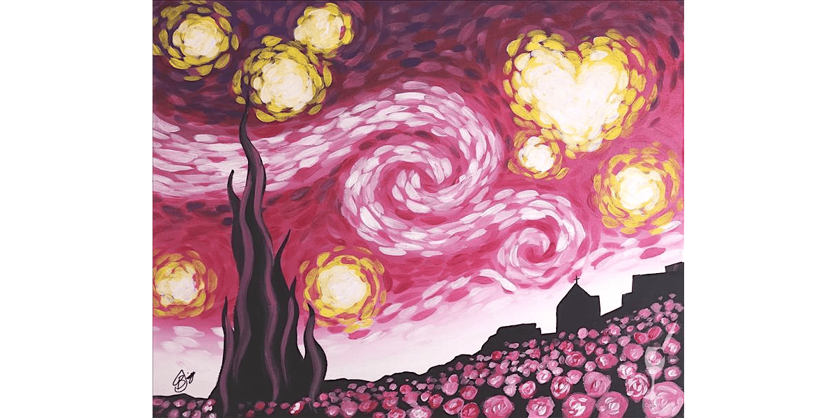Grab a drink, pick up a brush and vibe out at this fun paint and sip experience with Instructor Geri, hosted through Classpop! You’ll follow along as you create your own version of “Lovers’ Starry Night”, no pressure, just good vibes and creative flow.
