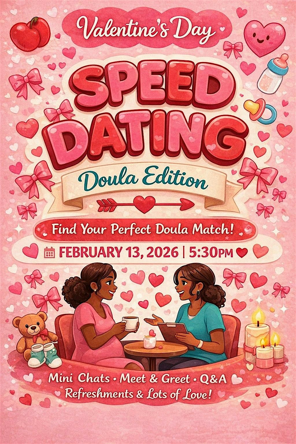 Join Love’s Pathway for Speed Dating: Doula Edition, a fun, intentional mixer where expecting parents and doulas connect through guided conversations, laughter, and community care.