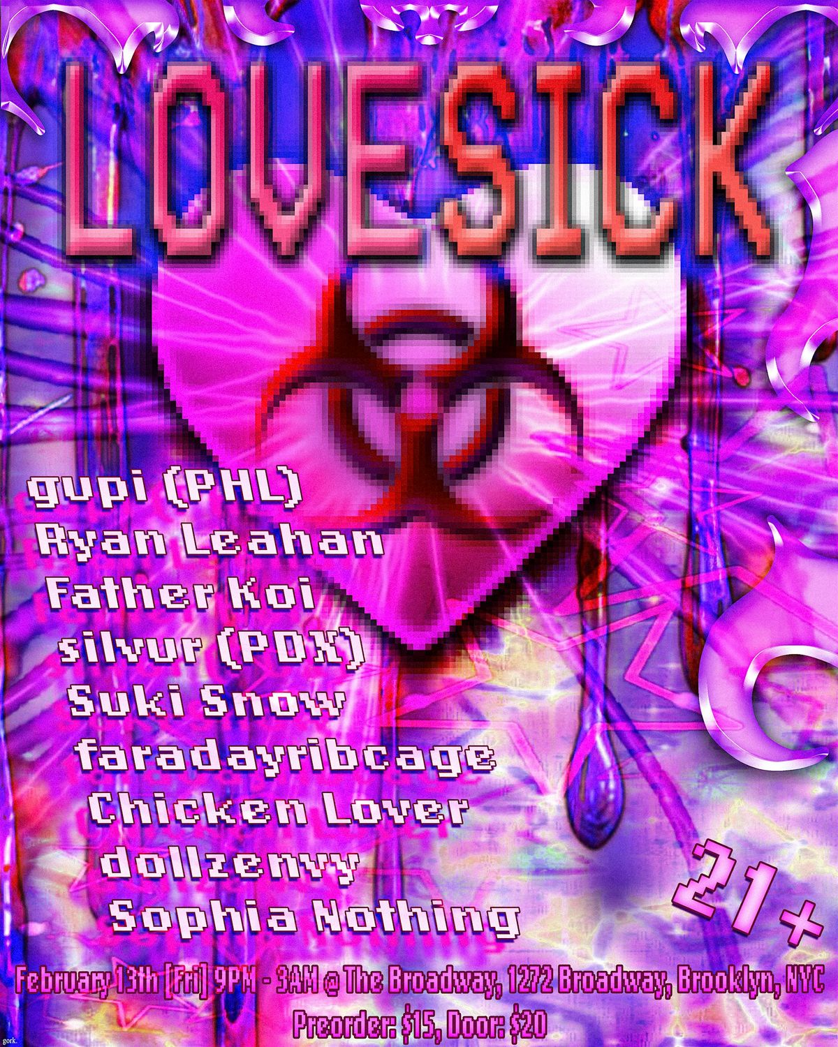 LOVESICK at The Broadway with gupi, Ryan Leahan, Father K0i, silvur, Suki Snow, faradayribcage, Chicken Lover, dollzenvy + Sophia NothingAbout this Event