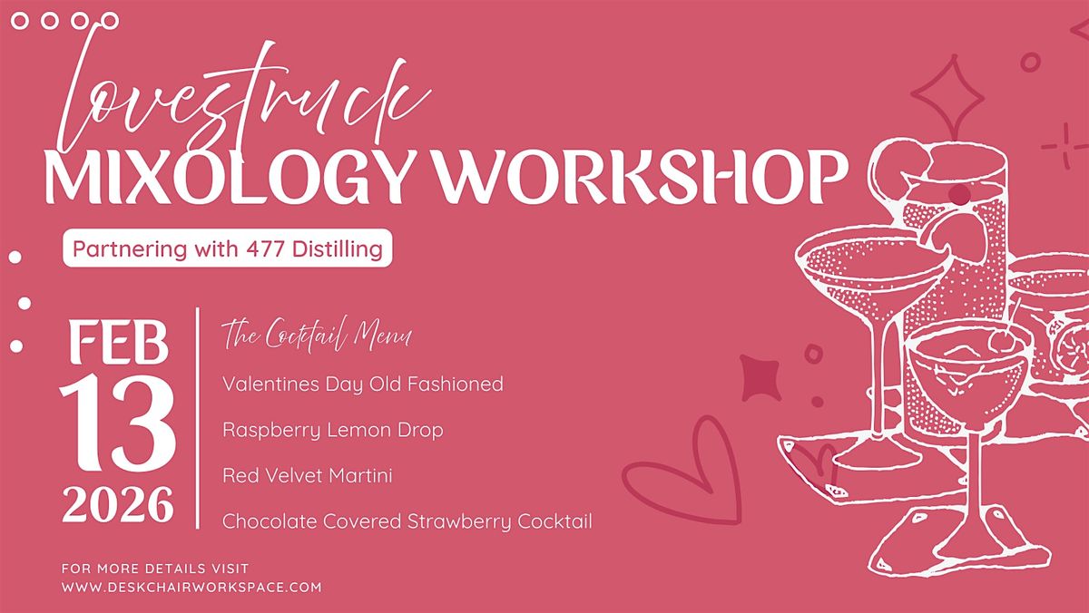 Join us for an unforgettable evening as we partner with the master mixologists at 477 Distilling! This hands-on workshop is your chance to dive into the art of mixology and craft four Valentine's-inspired cocktails that celebrate the holiday’s best flavors.