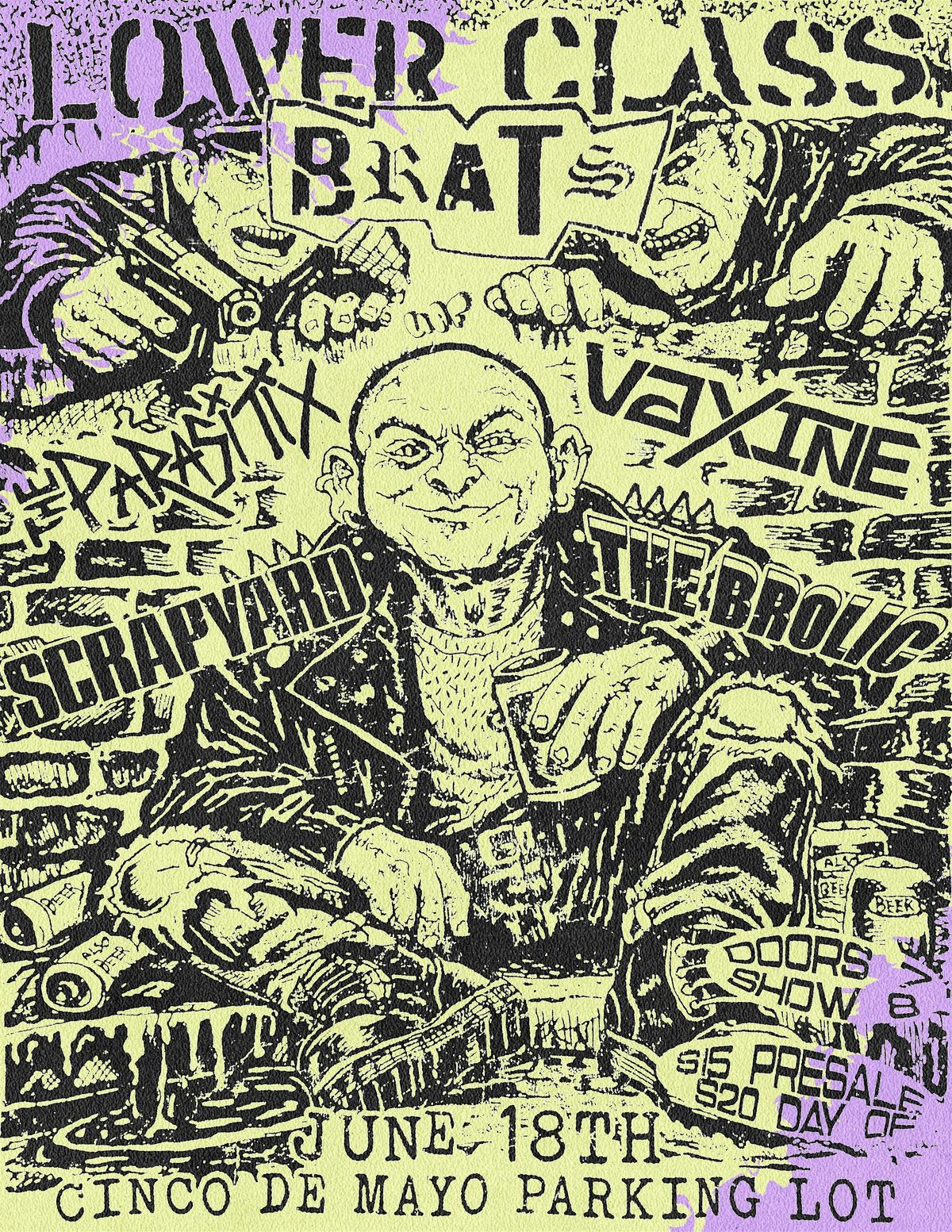 STACKED LINE UP LOWER CLASS BRATS, THE PARASITIX, VAXINE, SCRAPYARD, THE BROLIC