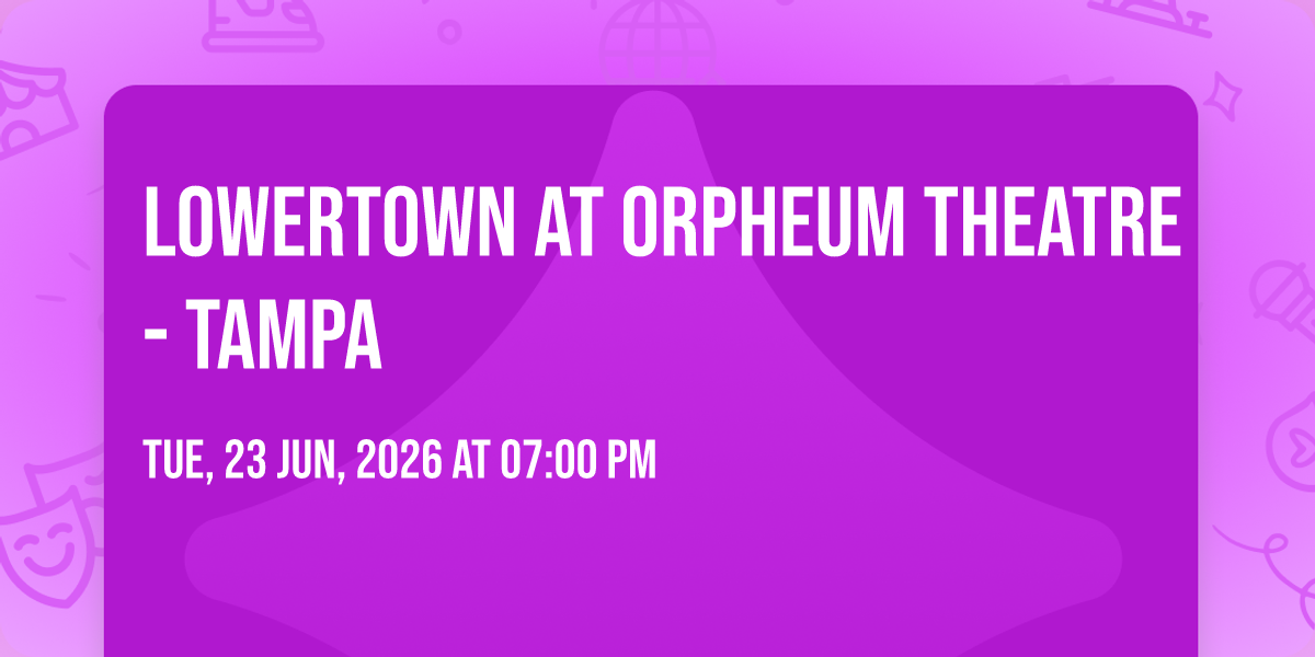✨ Discover the extraordinary at Lowertown at Orpheum Theatre - Tampa, where magic meets reality in ways you've never imagined! 🏛️ Set in Orpheum Theatre - Tampa nestled in bustling Tampa, FL, this event promises to be a landmark occasion. 📅 Taking place on June 23rd, 2026 at 07:00 PM, it's going to create an atmosphere where every moment becomes a cherished memory. 🌟 Immerse yourself in an experience crafted with attention to every detail, designed to surprise and delight at every turn. They have worked tirelessly to ensure this event exceeds all expectations, bringing together elements of entertainment, innovation, and pure joy. 🎊 Don't miss your chance to be part of this remarkable journey!