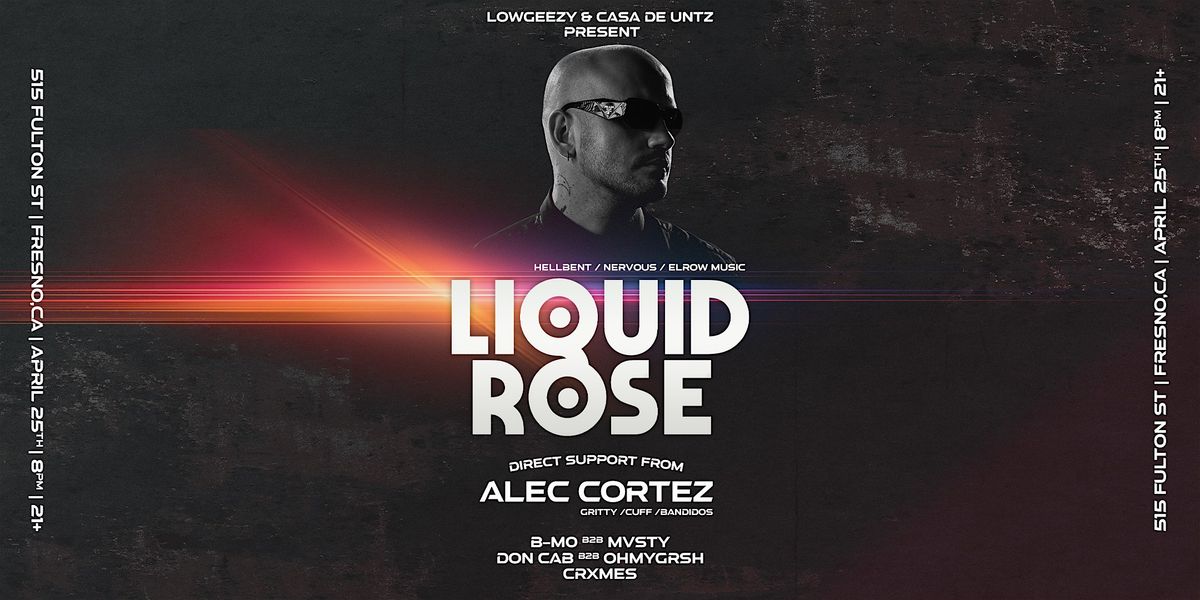 Liquid Rose brings his Los Angeles forged blend of Tech House, Minimal, and Latin Tech to Fresno for a rare Central Valley appearance. With releases on Nervous and Protocol and support from Marco Carola, John Summit, and Diplo, his sound carries both global credibility and underground weight.