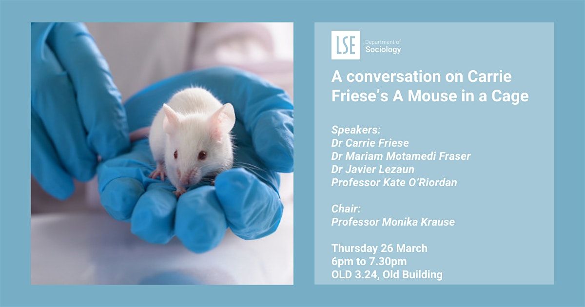 To celebrate the publication of Carrie Friese’s second research monograph, we have invited three speakers to respond to the book: Dr Mariam Motamedi Fraser, Dr Javier Lezaun and Prof Kate O’Riordan. Prof Monika Krause will chair this event that invites the audience to engage the sociological significance of laboratory animals.