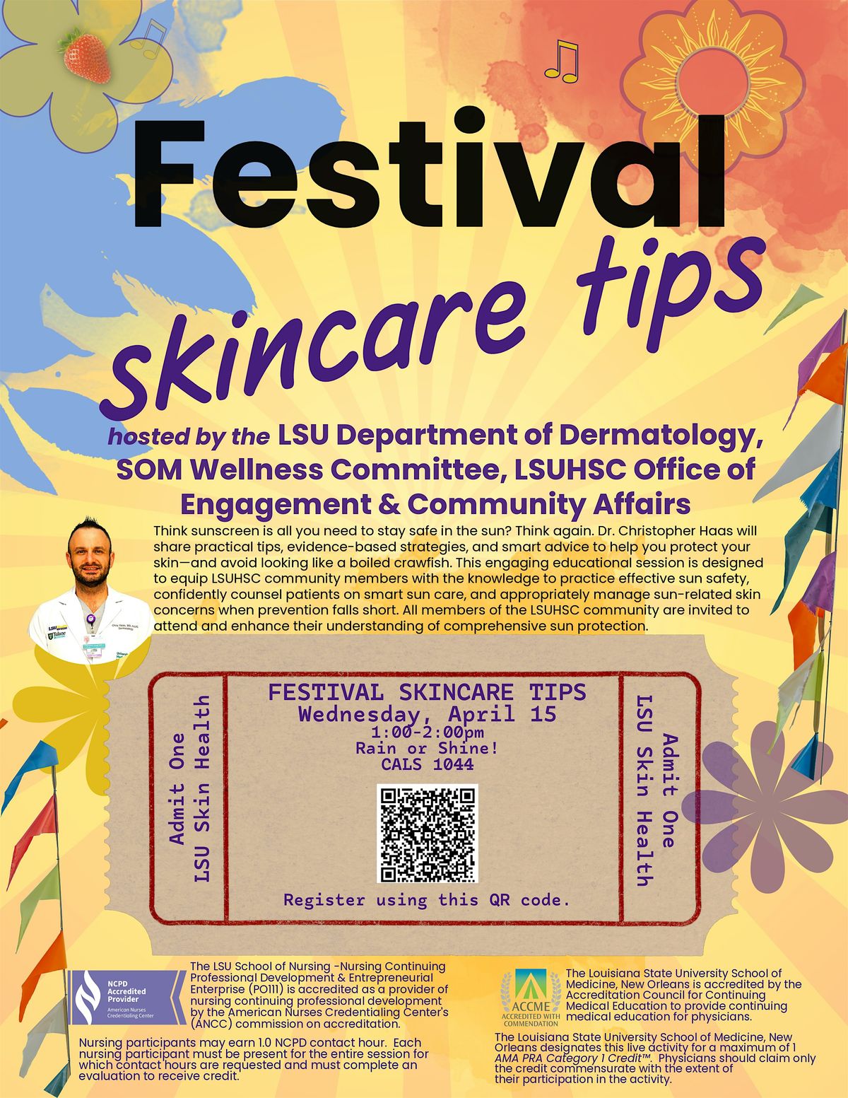 CME and CNE certified conference for the LSUHSC healthcare community to be held on April 15, 2026. Located at CALS 1044 from 1:00-2:00 pm