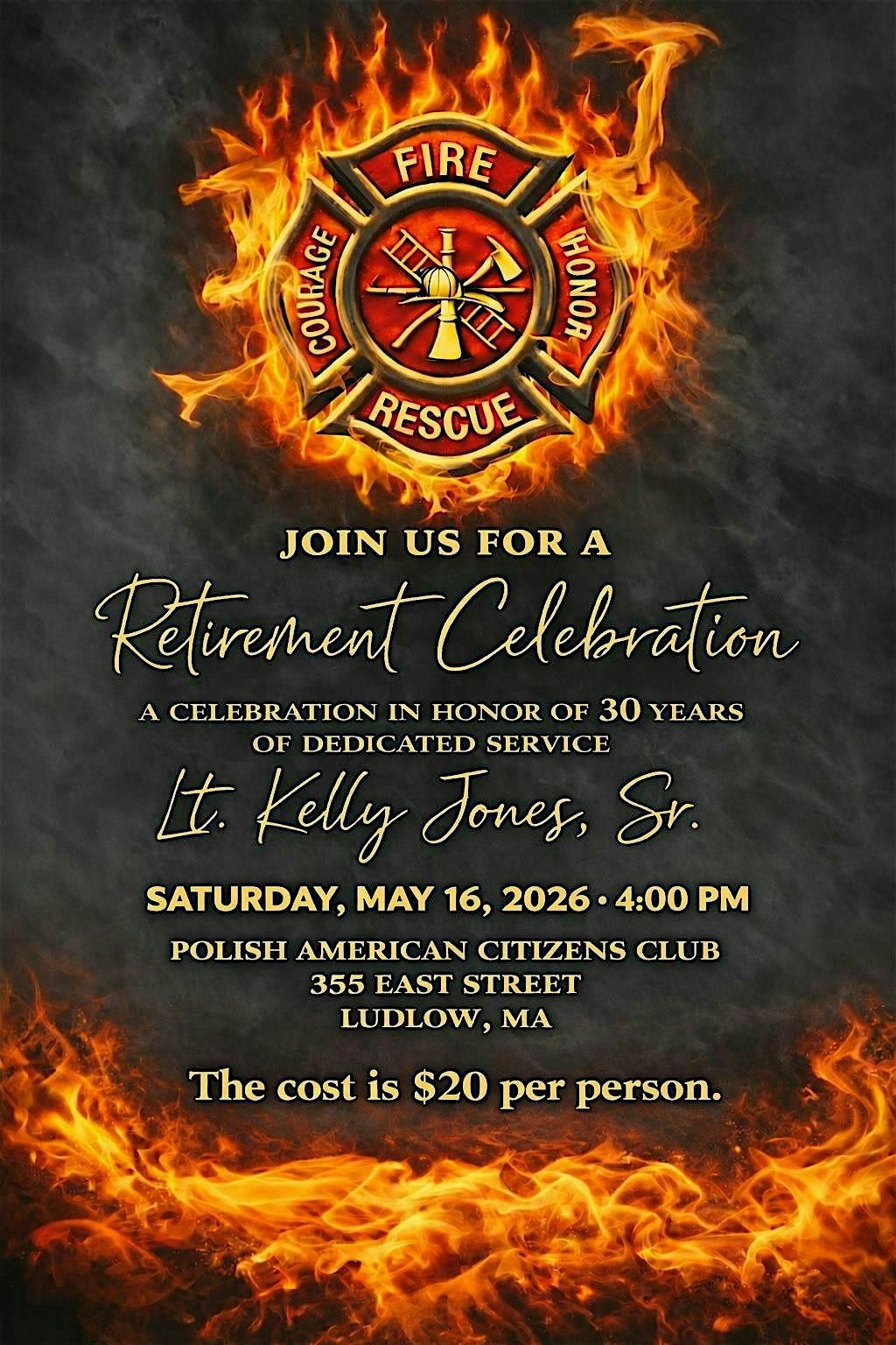 Join us as we celebrate and honor Lt. Kelly Jones, Sr's 30 year career and retirement! It's a great chance to share stories, good laughs, and warm wishes.