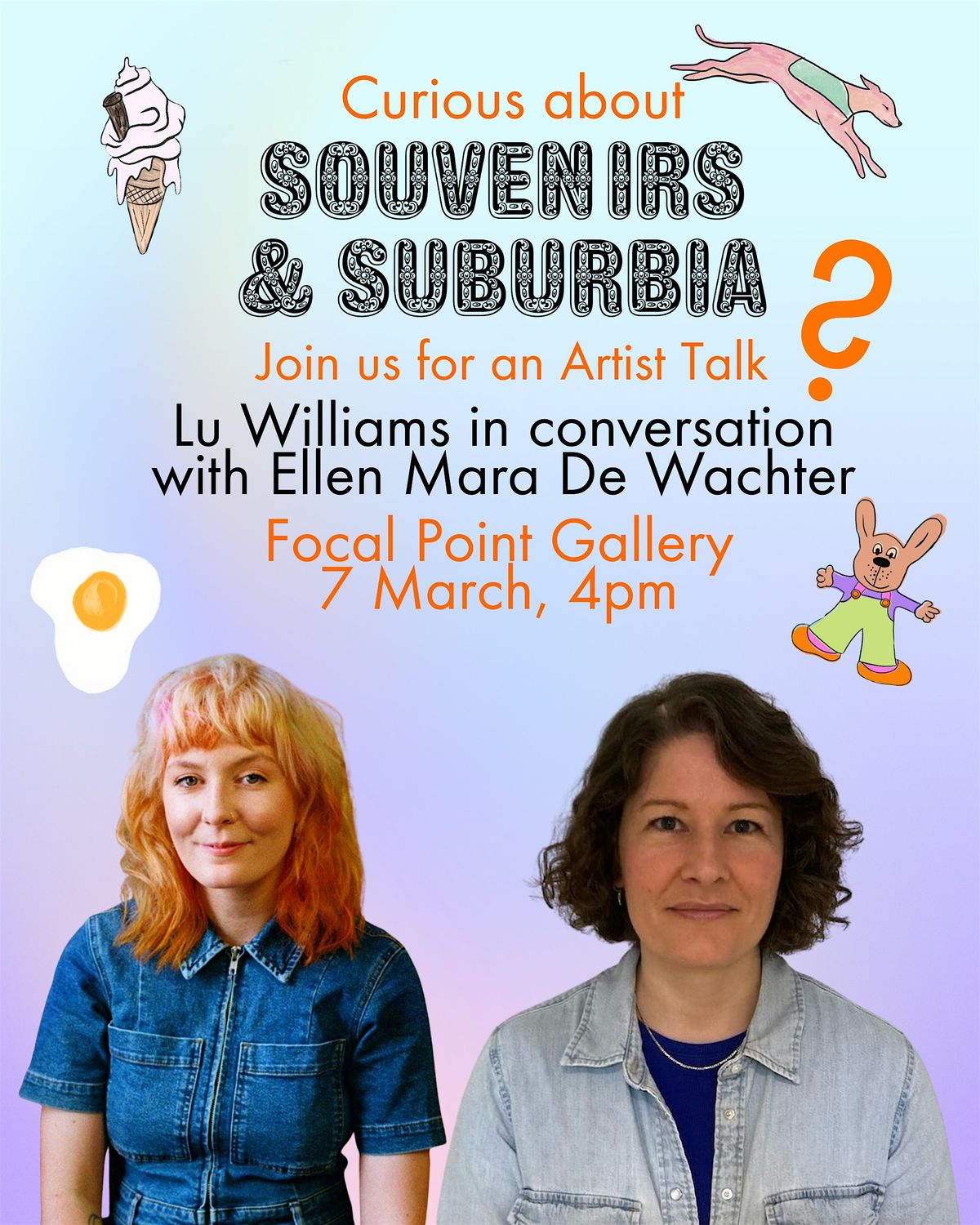 Join us at the gallery on Saturday 7 March at 4pm for this special in-conversation event between artist Lu Williams and writer and coach Ellen Mara De Wachter, which offers an opportunity to gain insight into the making of this public artwork and to learn more about Lu Williams’s artistic practice.
