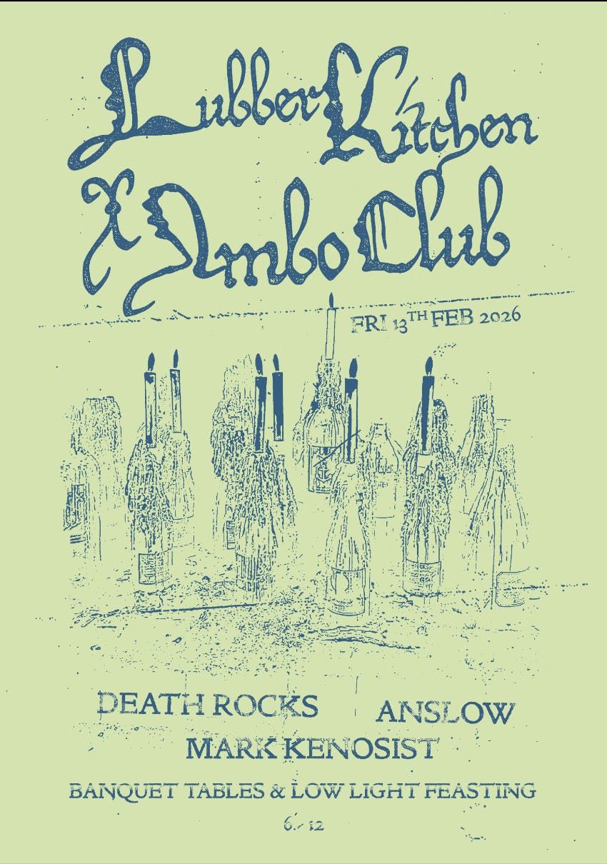 For the first time Ambo Club and Lubber Kitchen are collaborating on very special event; a candle-lit feast in the venue. Long banqueting tables, a stunning 3 course offer from chefs downstairs and 3 of our finest DJs, Death Rocks, Anslow & Mark Kenosist playing throughout the night. Tickets are £38, more information on the menu to follow, all dietary requirements catered to.Doors at 6pm, first course at 7pm. Large groups are advised to get down early to find seats together.