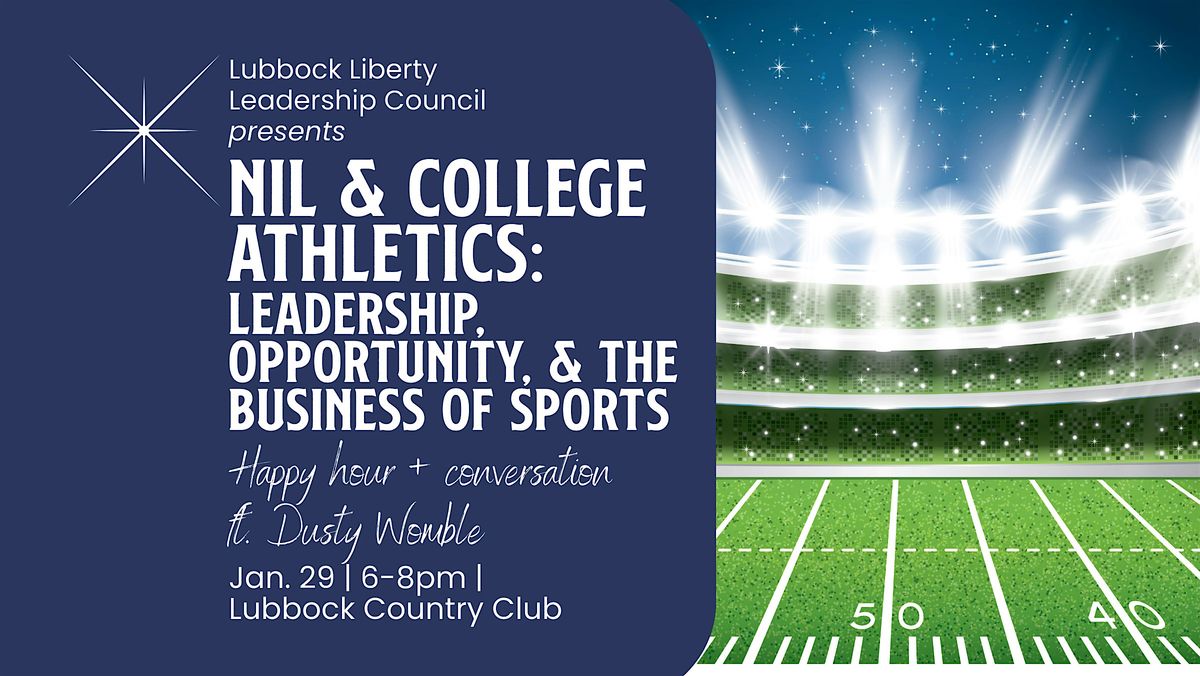 The Lubbock Liberty Leadership Council* (LLC) invites young professionals to the Lubbock Country Club for a happy hour conversation on the evolving landscape of college athletics.