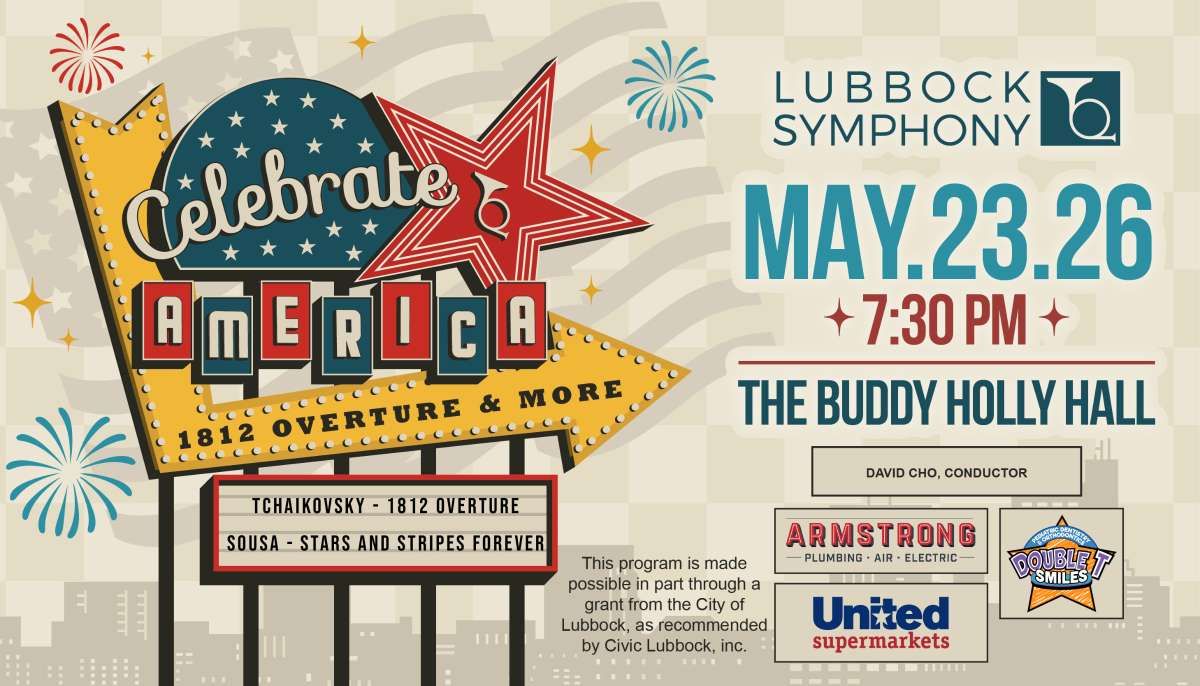 🎉 Welcome to Lubbock Symphony Orchestra - Celebrate America: 1812 Overture and More at Helen DeVitt Jones Theater at The Buddy Holly Hall, where dreams come alive and possibilities are endless! 🏛️ Join us at Helen DeVitt Jones Theater at The Buddy Holly Hall in the heart of Lubbock, TX for an event that defies expectations. 📅 On March 23rd, 2026 at 07:30 PM, be part of something truly extraordinary as we bring together innovation, entertainment, and pure magic. ✨ Every aspect has been carefully designed to ensure an unforgettable experience for all our guests. Whether you're seeking adventure, inspiration, or simply a break from the ordinary, this event promises to deliver beyond your wildest dreams. 🎊 Prepare for a journey into the extraordinary!
