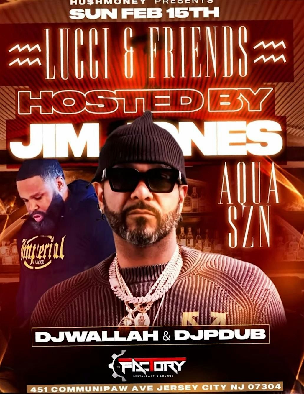 Get ready for an epic night with LUCCI & FRIENDS, hosted by the one and only JIM JONES! Join us in person on Feb 15th for great vibes, awesome music, and unforgettable moments. Don't miss out on catching the crew live – it's gonna be a blast!