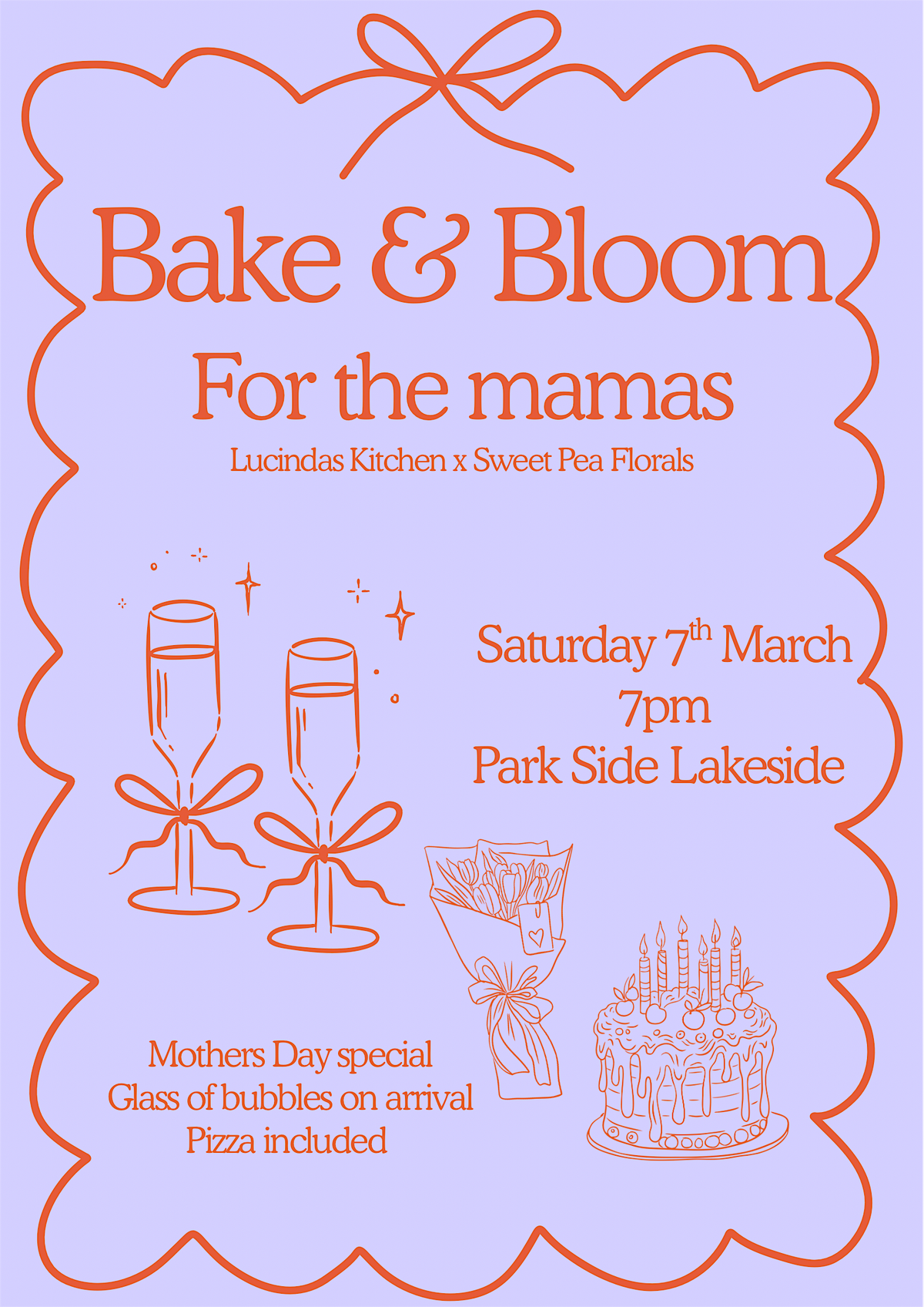 Join us for an evening to celebrate the mamas Decorate a cake with Lucindas Kitchen and make a floral bouquet with Sweet Pea Florals