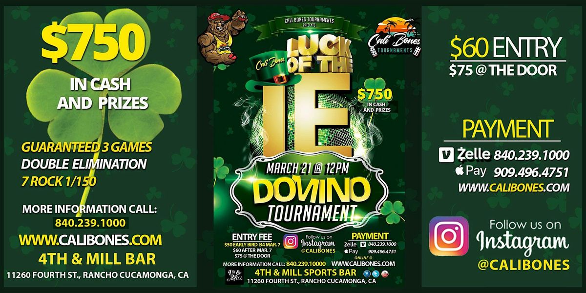 “The Luck The IE ” “The Luck Of The IE ” Domino Tournament to be held at 4th and Mill Bar in Rancho Cucamonga, CA.