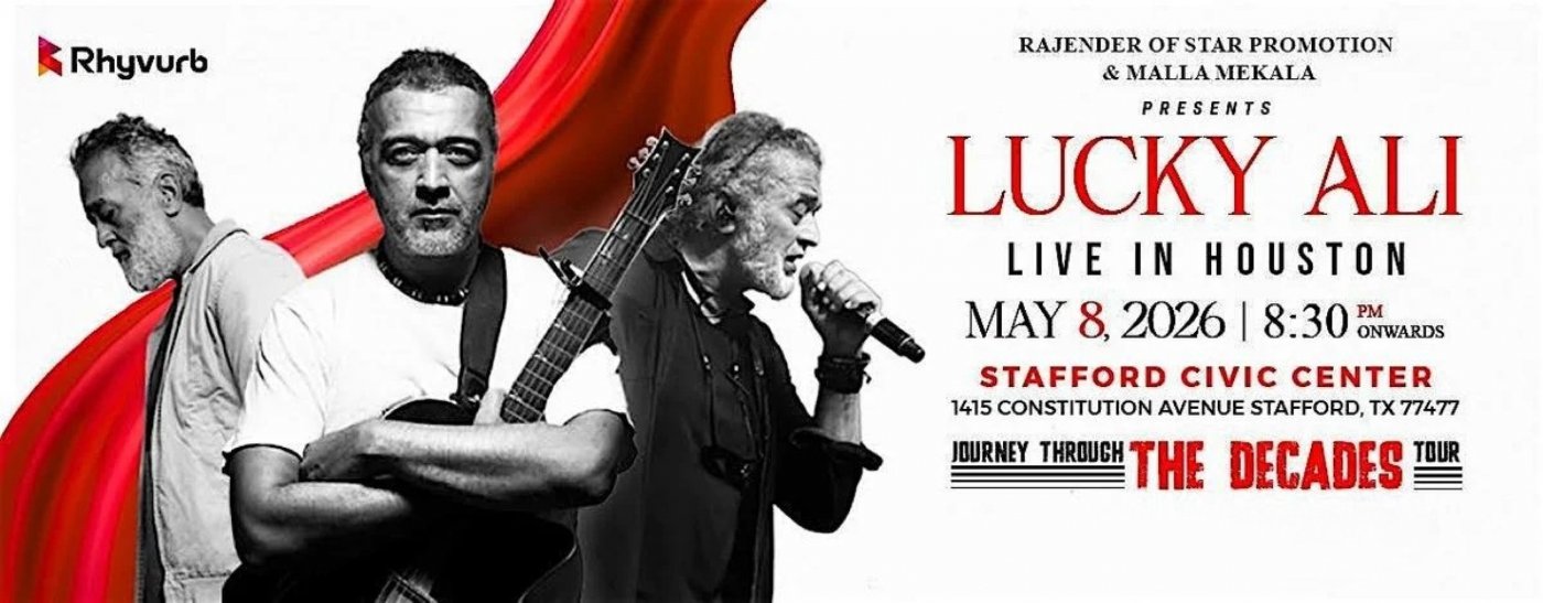 Get ready for an unforgettable evening at the Stafford Civic Center on May 8, 2026 at 8:30 PM (Central Time). Lucky Ali is bringing his soulful vibes and amazing tunes right to Houston. It's the perfect chance to chill, sing along, and enjoy some great live music in a cozy, in-person setting. Grab your friends and make it a night to remember!