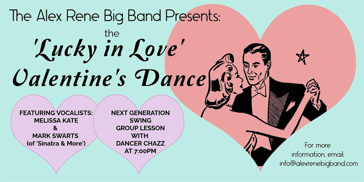 Grab your sweetheart and dance the night away with The Alex Rene Big Band at our 'Lucky in Love' Valentine's Dance featuring vocalists Melissa Kate & Mark Swarts of 'Sinatra & More'. Dancer Chazz will be offering a free Next Generation Swing group lesson starting at 7:00pm. Presale tickets are $20 and tickets will be $25 at the door. Cash Bar. Friday, February 13th at the Milton J. Brounshidle Post No. 205, 2254 Delaware Ave 14217.