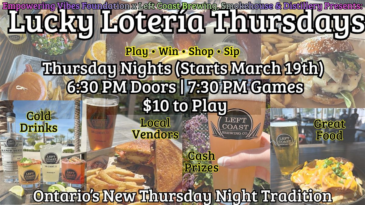 Get ready for Lucky Lotería Thursdays, a weekly community game night at Left Coast Brewing, Smokehouse & Distillery in Ontario.