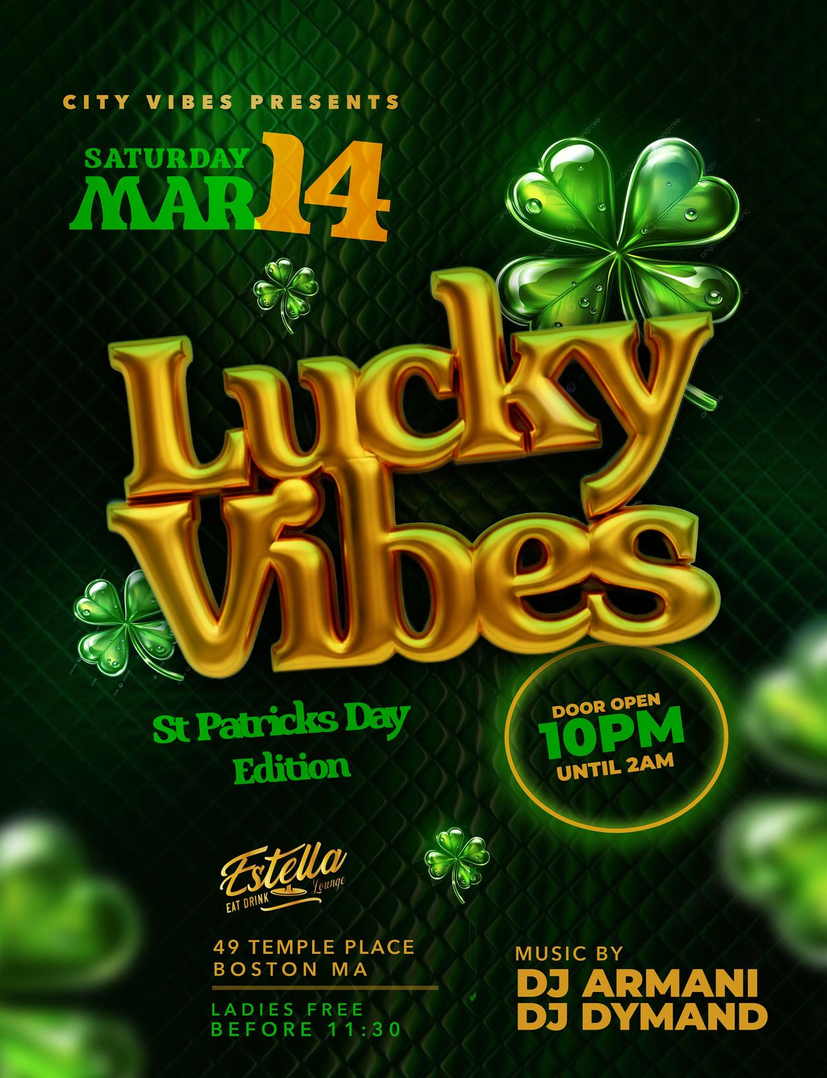 Boston - Saturday, March 14th at Estella’s 💚 The drinks will be flowing, the music will be hitting, and who knows… you might just get lucky that night 👀🍀 pull up and find out.