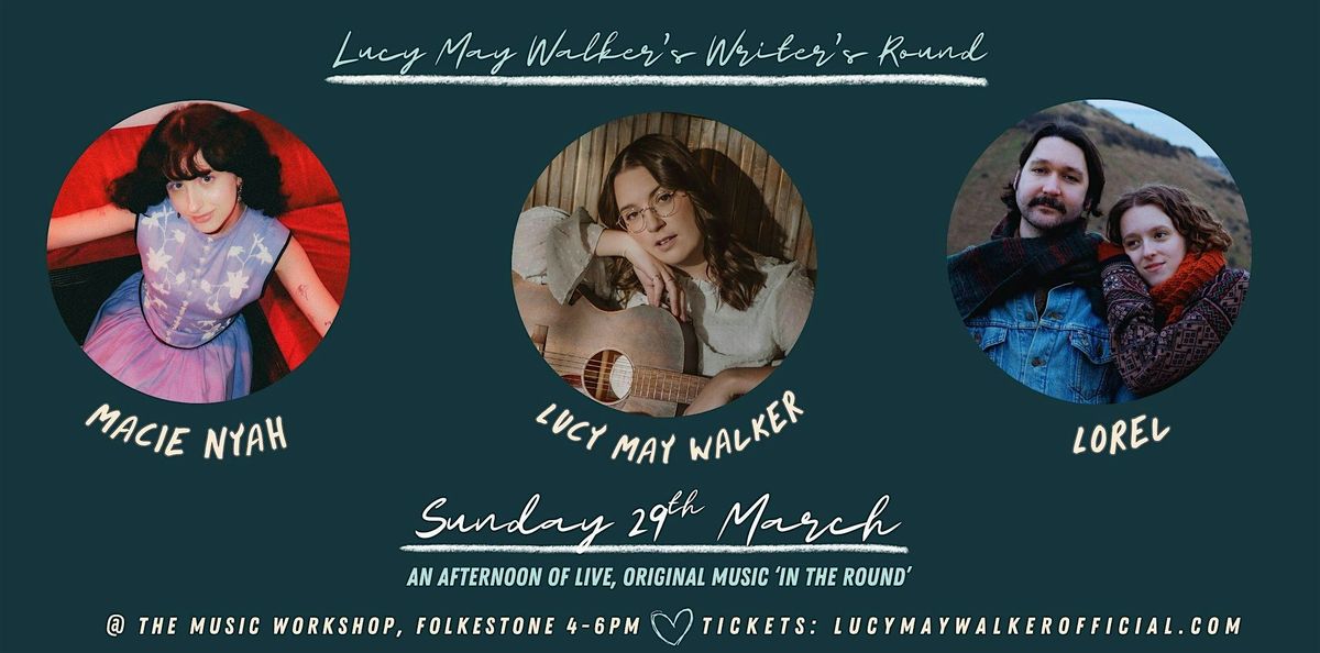 Lucy May Walker's monthly Writer's Round is an afternoon of original music in the style of a Nashville writers round where 3 featured artists sit on the stage at the same time and take turns in playing their songs & telling the stories behind them. Discover your new favourite artist in an intimate, cosy setting by the seaside.