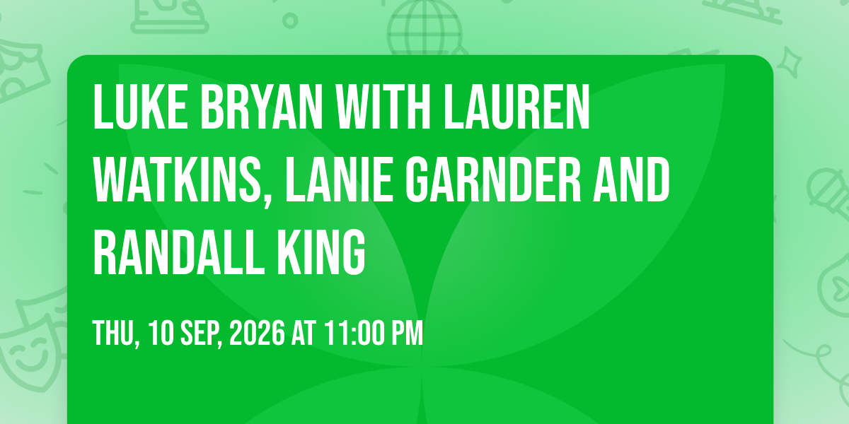 📍 Location: 27.9932, -82.3651🌟 Be part of history at Luke Bryan with Lauren Watkins, Lanie Garnder and Randall King, an extraordinary gathering that will captivate your imagination! 🏛️ The prestigious MidFlorida Credit Union Amphitheatre in Tampa, FL sets the stage for an unforgettable experience on September 10th, 2026 at 11:00 PM. ✨ They are bringing together the finest elements of entertainment and innovation to create moments that will take your breath away. From the moment you arrive, you'll be immersed in an atmosphere of wonder and excitement. 🎯 This carefully planned event ensures every guest experiences something truly special. 🎊 Early booking is recommended for this must-attend event of the season!