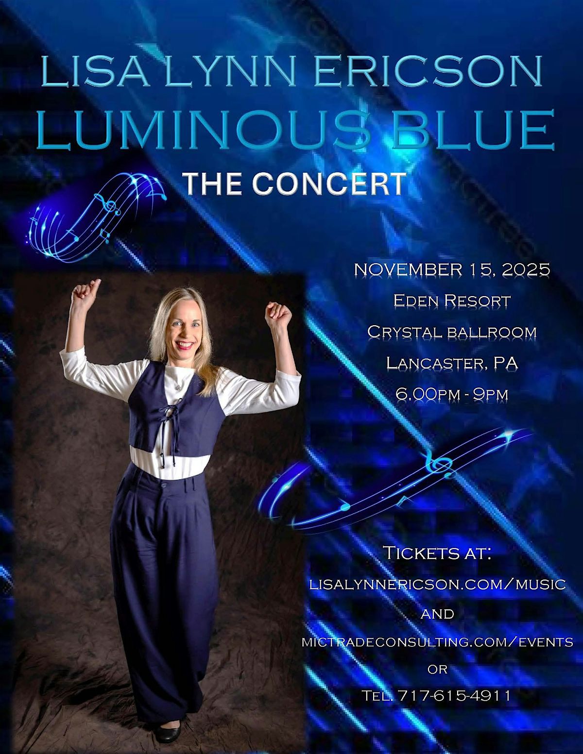 The LUMINOUS BLUE concert features Lisa Lynn Ericson as well as additional surprise performances with a multicultural flourish. Tickets include gourmet hors d’oeuvres and drinks.