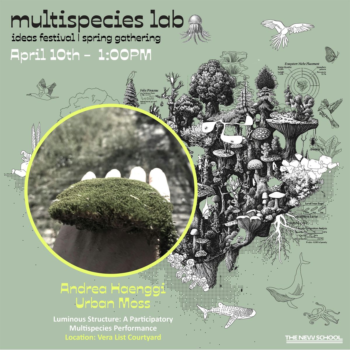 Join us for a participatory performance co-created by andrea haenggi and urban moss, where human bodies and moss come together to explore displacement, energy and multispecies connection.