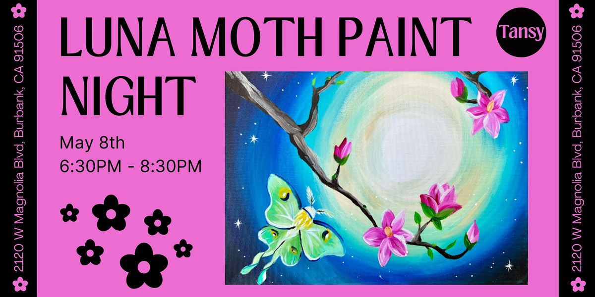 Unwind at Tansy with our Luna Moth Paint Night! Join us in the serene Tansy garden for a fun and engaging workshop led by the talented Stormy Tripp from the Painting Joint. This class is designed for all ages and skill levels, providing a step-by-step guide to help you create a beautiful 16"x 20" moth inspired painting.