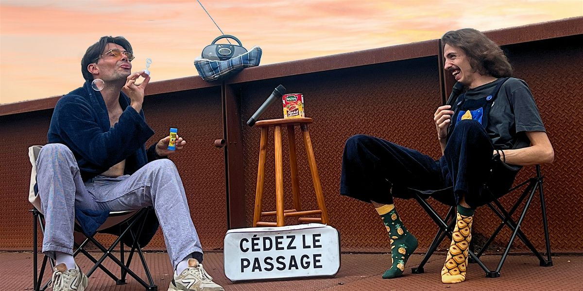 Des vannes cosmiques, des perruques intergalactiques, et des chutes..libres. Les tartines de kiff sont validées par Thomas Pasquier (tu l’as). Le couvert il est dressé y a plus qu’à manger : viens partager des saccades de souffle improbables (rire avec tes amis).
