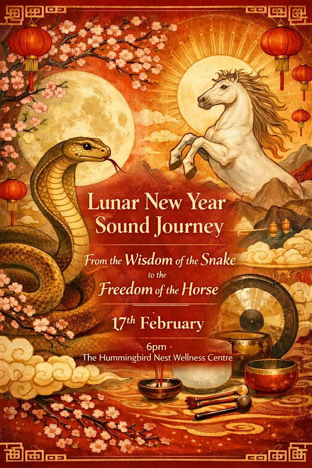 Join us for a deeply immersive Lunar New Year Sound Journey as we honour the completion of the Year of the Snake and welcome the incoming energy of the Year of the Horse.