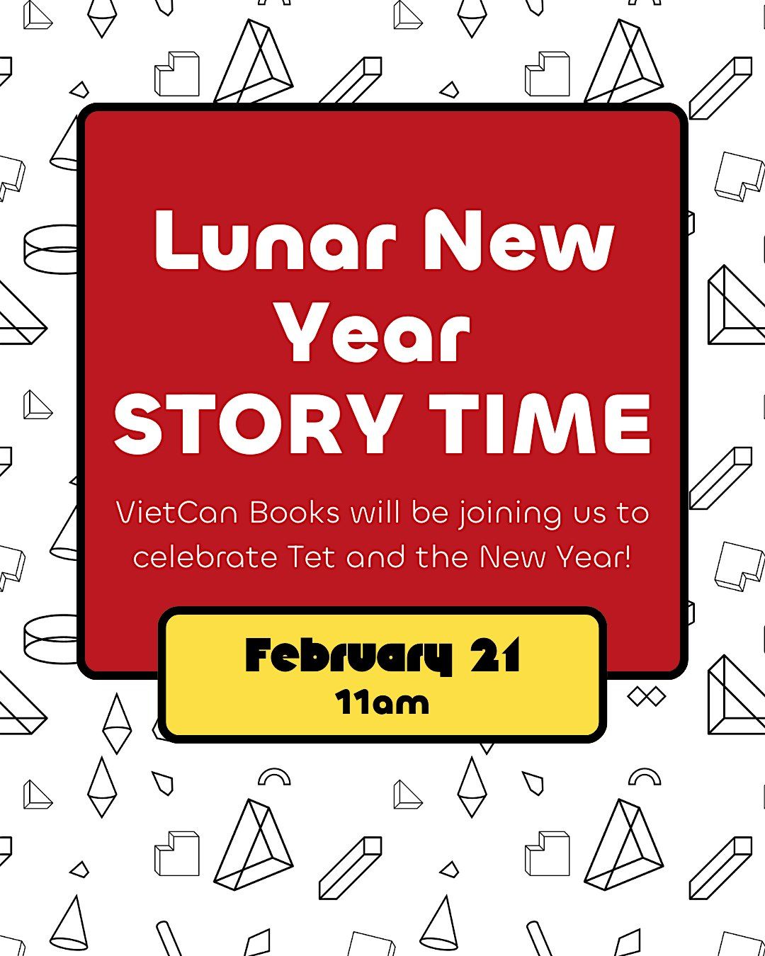 Join us at 11 am for a special story time to celebrate the Lunar New Year! We are happy to have Tam from VietCan Books joining us to read Mama, what is Tet?. Eric will also be reading Wish Soup, celebrating Seollal.