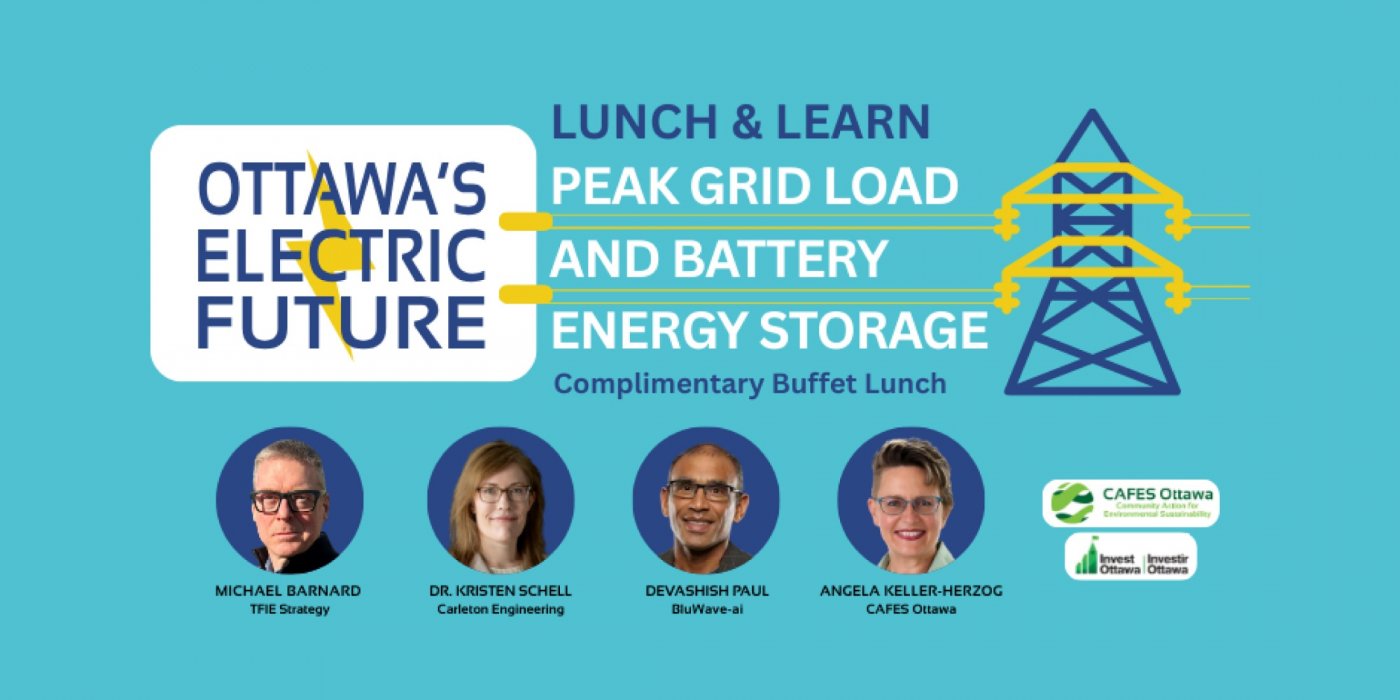 CAFES, in partnership with Invest Ottawa, welcomes you to join us for a Lunch and Learn at Bayview Yards: Ottawa's Innovation Centre! You'll learn from experts in the field about how electricity grids are built around peak demand and how battery energy storage systems (BESS) are increasingly used by utilities and large energy users to manage peak load, improve resilience, enable electrification and local economic development.