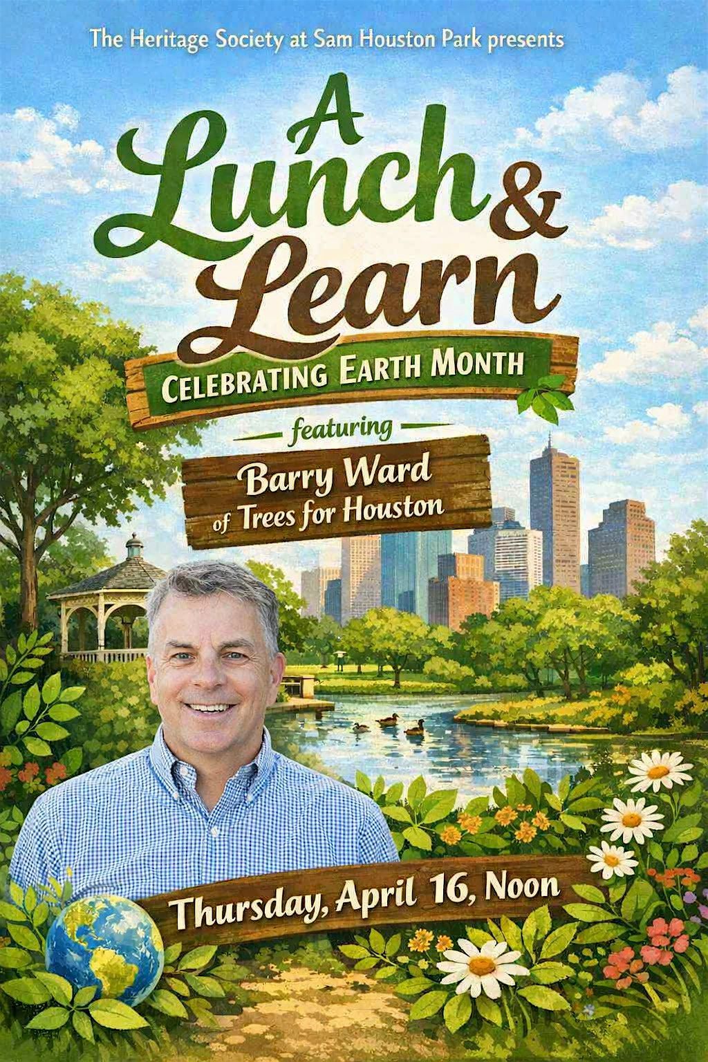 This Earth Month, The Heritage Society welcomes Barry Ward, Executive Director of Trees for Houston, for a special Lunch & Learn on the power of urban forestry and community-driven environmental action. Ward will share insights from his decades of nonprofit leadership and discuss how tree planting transforms neighborhoods, improves public health, and builds climate resilience across Houston.