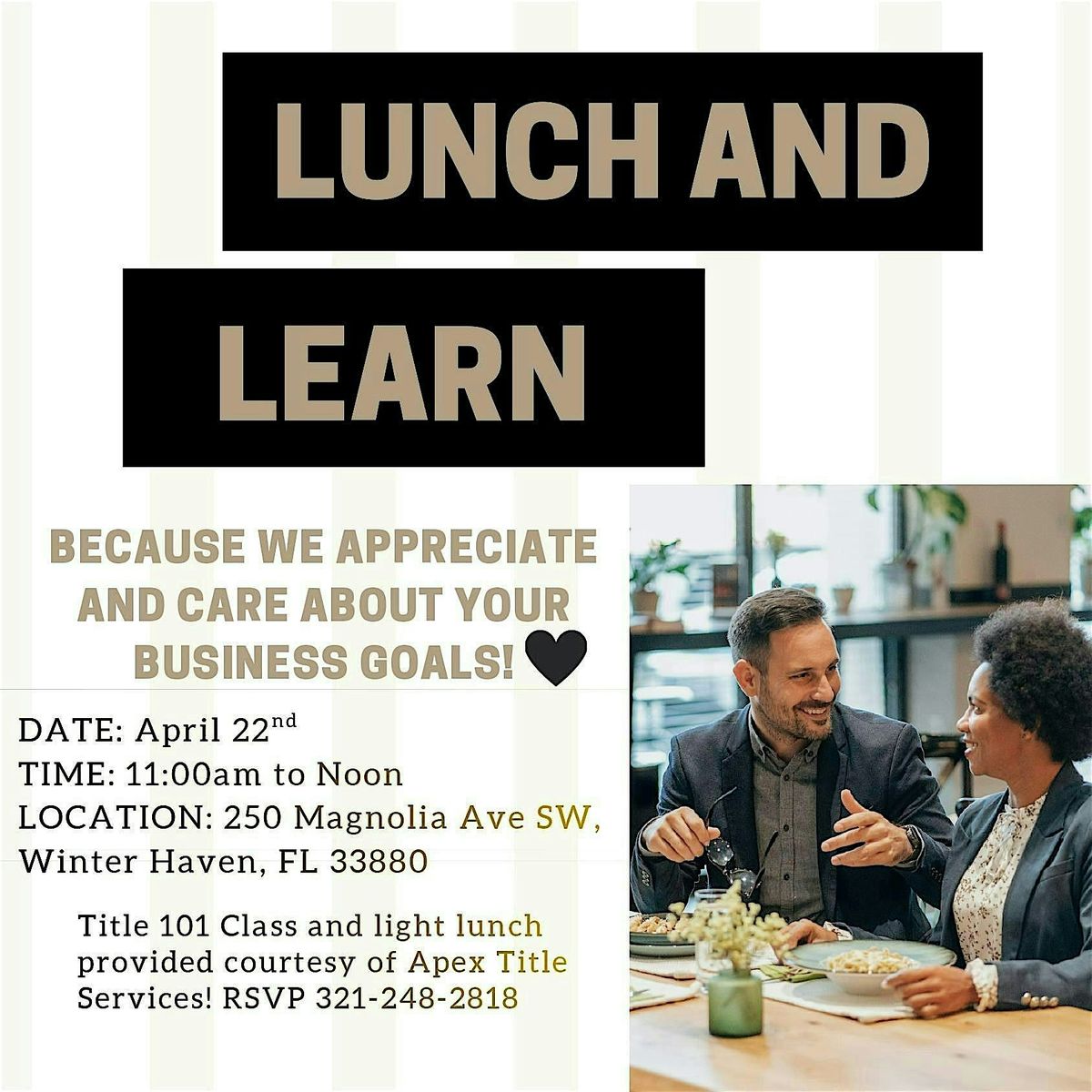 Enjoy a light lunch while learning the basics of Title 101, courtesy of Apex Title Services.About this Event