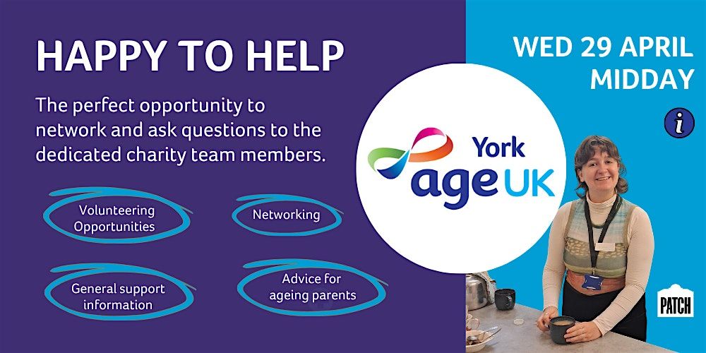 Join Age UK York, a local independent charity, to discover how we can all support the older people in our city. Whether you need advice on helping ageing parents, navigating financial issues, or finding meaningful volunteering roles, this is your chance to make a real impact.