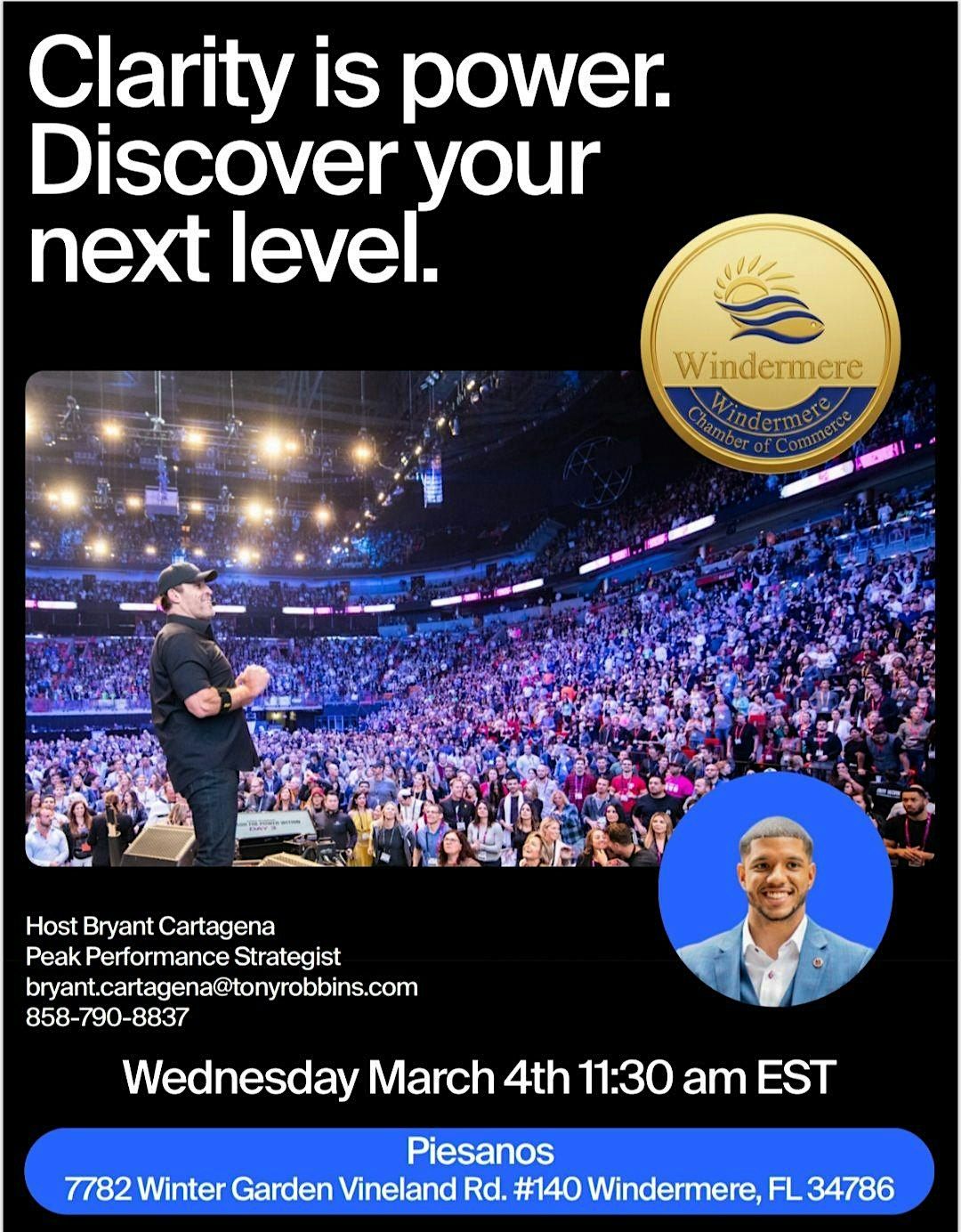 Clarity is Power β Discover your next level in this fun, in-person session. Come hang out, grab a bite, and unlock your true potential with us. It's all about gaining clear insights and practical tips to boost your game. Donβt miss this chance to connect, learn, and grow together. See you there!