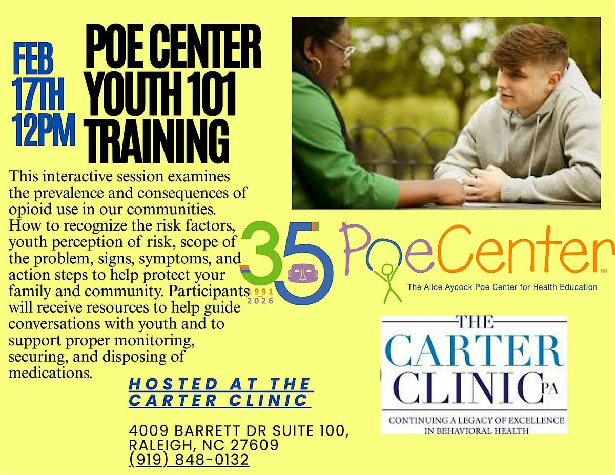 This training will be provided in partnership with the POE Health Center & the Carter Clinic P.A. This event is sponsored by the Wake County Opioid Settlement Funds and The Carter Clinic P.A. This event is free to attend but space is limited. Please email if there are any dietary restrictions.