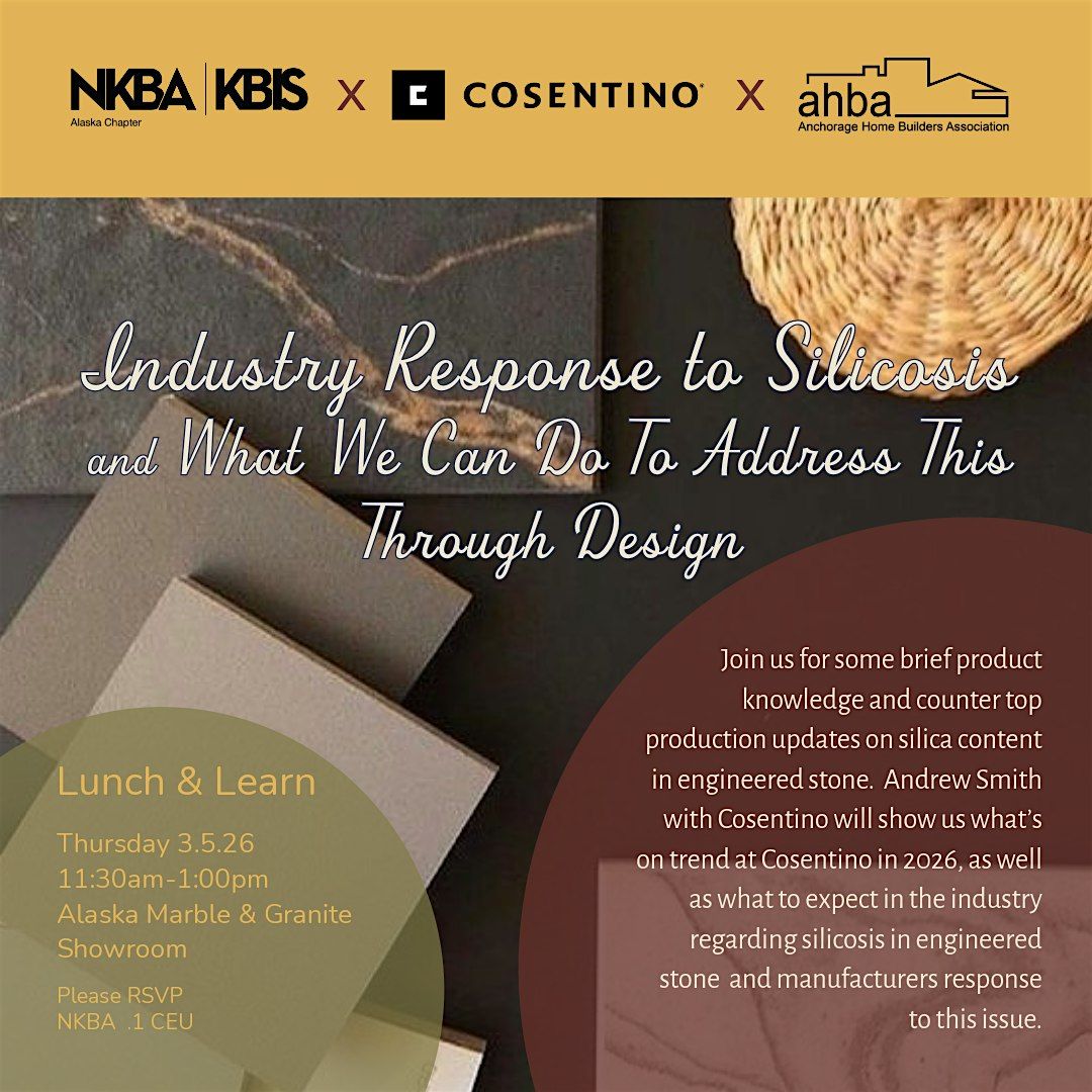 Join us for some brief product knowledge and countertop production updates on silica content in engineered stone. Andrew Smith with Cosentino will show us what’s on trend at Cosentino in 2026, as well as what to expect in the industry regarding silicosis in engineered stone and manufacturers response to this issue.