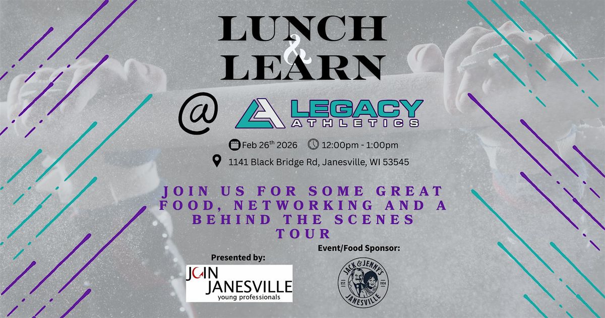 Grab the Family for a Lunch & Learn with legacy Athletics. Food provided by Jack & Jenny's followed by an exclusive tour by the owner!