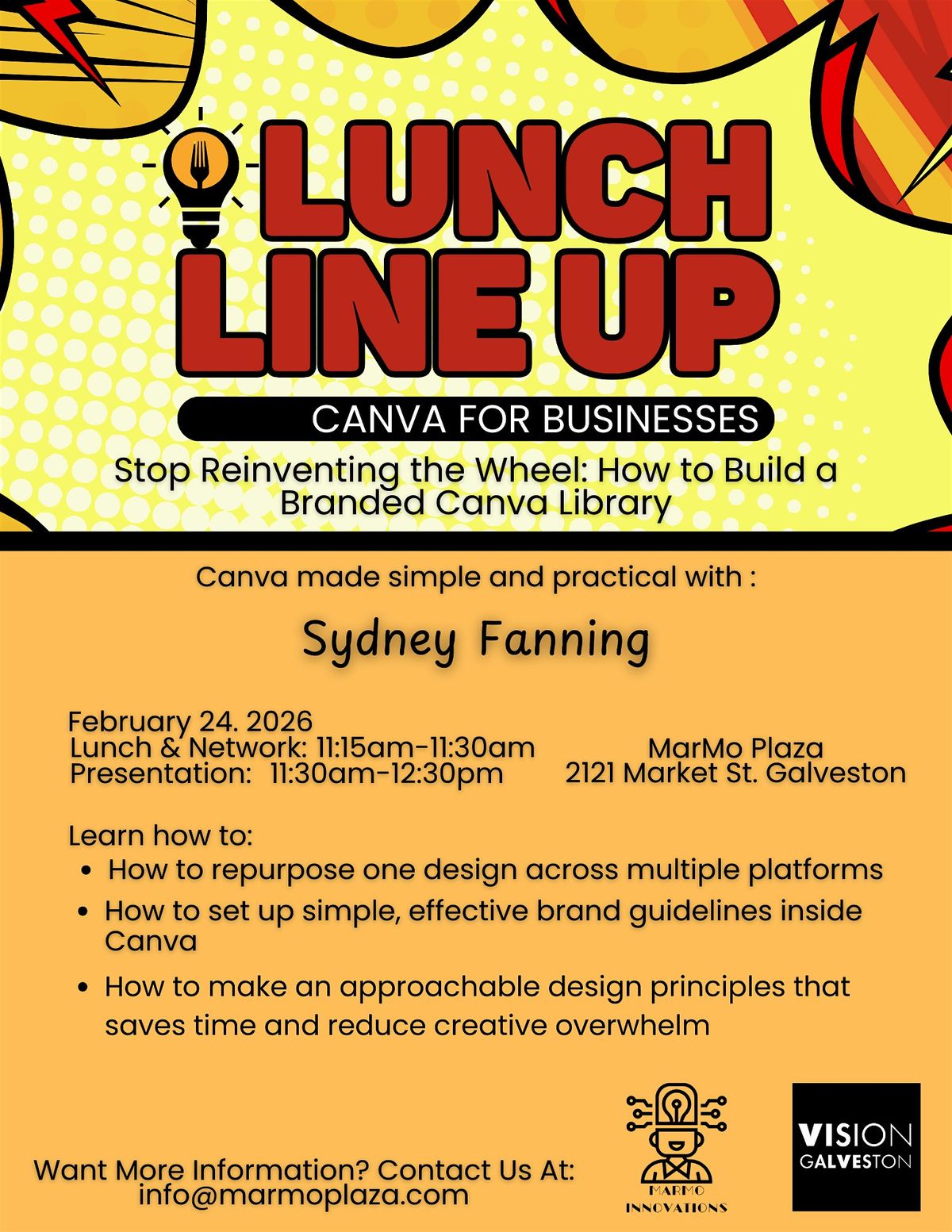 Attendees will learn essential brand assets, set Canva brand guidelines, and repurpose one design across platforms!