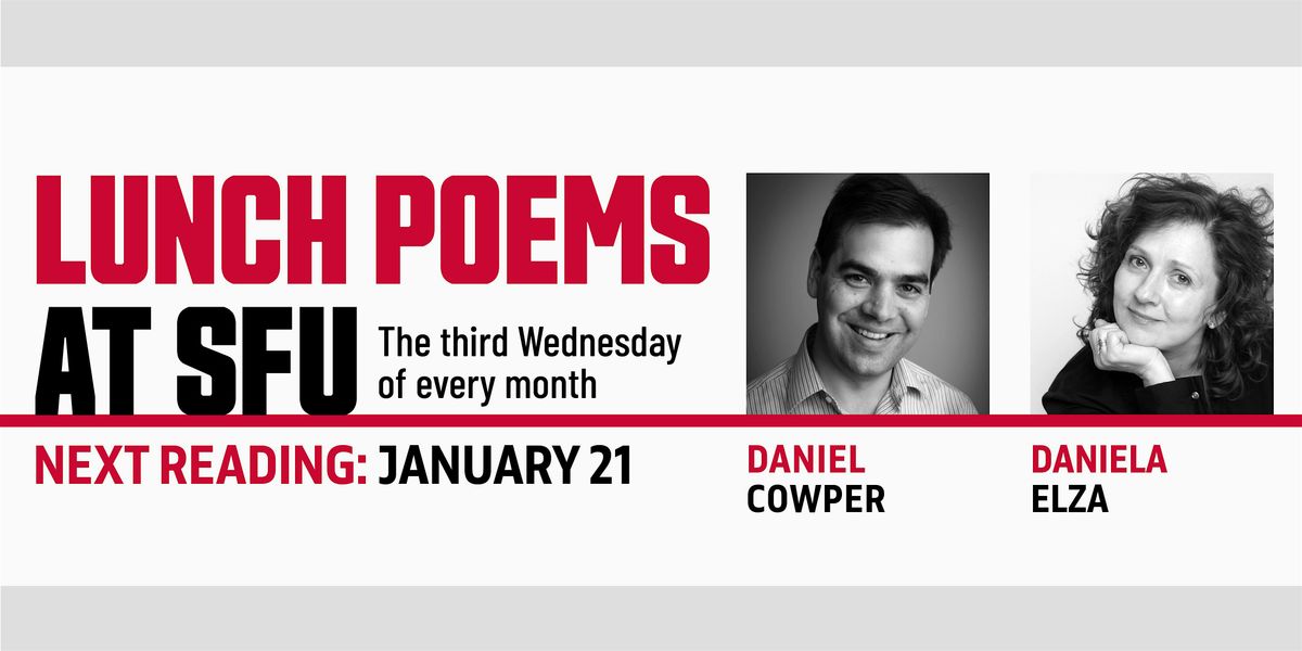 January’s Lunch Poems reading at SFU Harbour Centre’s Teck Gallery features poets Daniel Cowper and Daniela Elza.