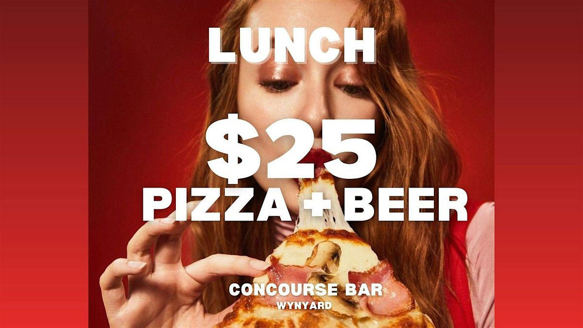 CBD lunch sorted Enjoy $25 pizza & beer at Concourse Bar Wynyard. Perfect for work breaks & casual catch-ups.About this Event