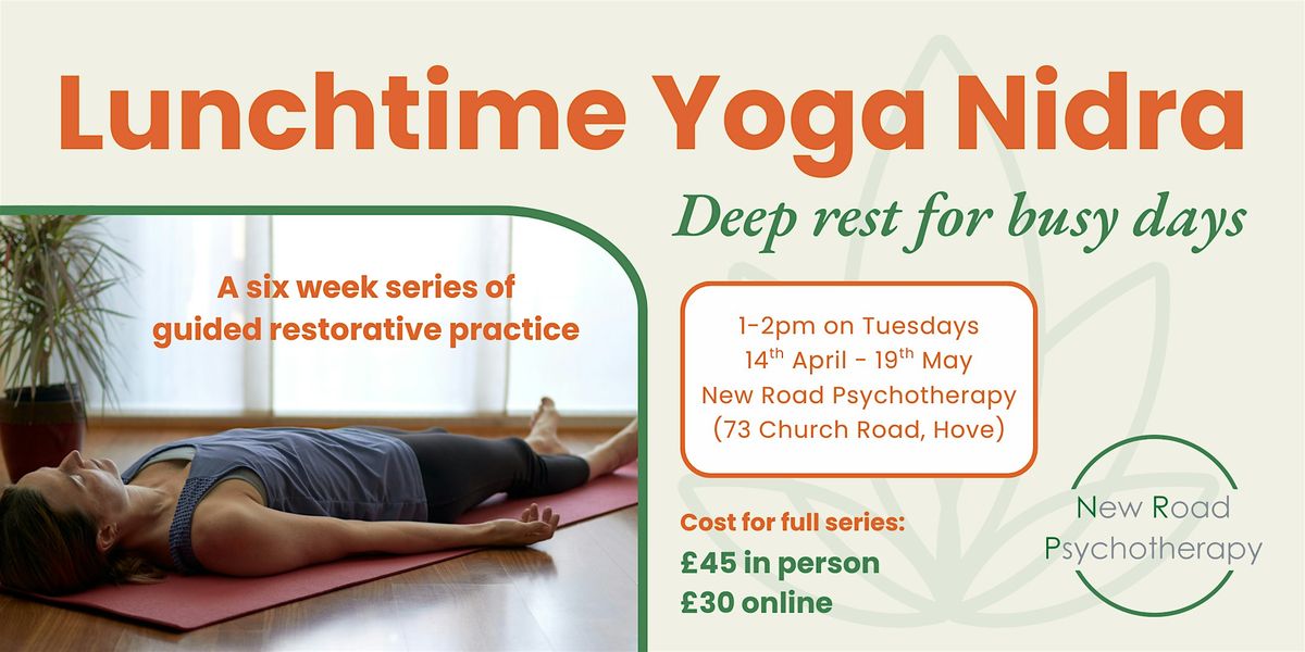 It can be hard to take time for ourselves amid life's pressures and responsibilities, so this six week Yoga Nidra series offers a gentle and practical solution: a lunchtime pause designed to fit into busy lives, creating space for the nervous system to reset.