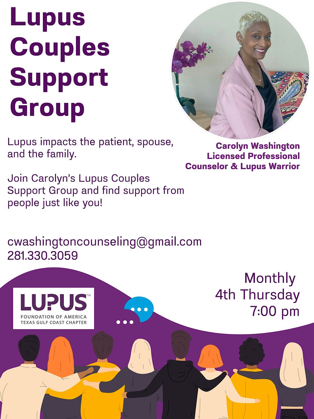Join us in person for the Lupus - Couples Support Group! This is a cozy space where couples can share their experiences, challenges, and victories living with lupus. Connect with others who truly understand what you're going through. Whether you're newly diagnosed or navigating long-term care, this group offers support, understanding, and friendship. Come chat, learn, and grow together!