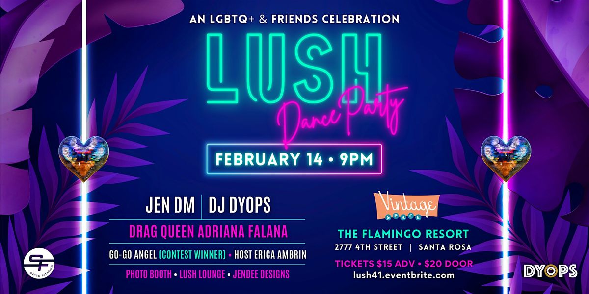 Come Correct or Don't Come At All: LUSH is a safe, inclusive space centering LGBTQIA+ love, bodies, and joy. Anyone bringing racism, transphobia, fatphobia, or hate of any kind will be escorted out with zero Valentine’s kisses.