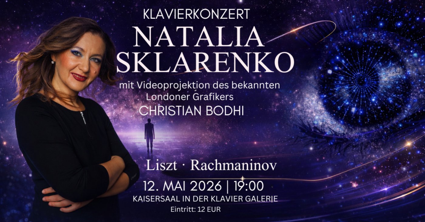 Come to an evening dedicated to the music of Franz Liszt and Sergei Rachmaninoff, where piano music is combined with a projection by the renowned London-based graphic artist Christian Bodhi. The concert will take place on May 12, 2026, at 7:00 PM in the Kaisersaal in Vienna.